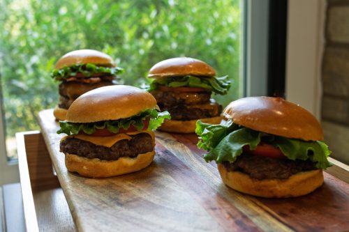 Juicy beef and veggie burgers, made to order – with fries or tots!